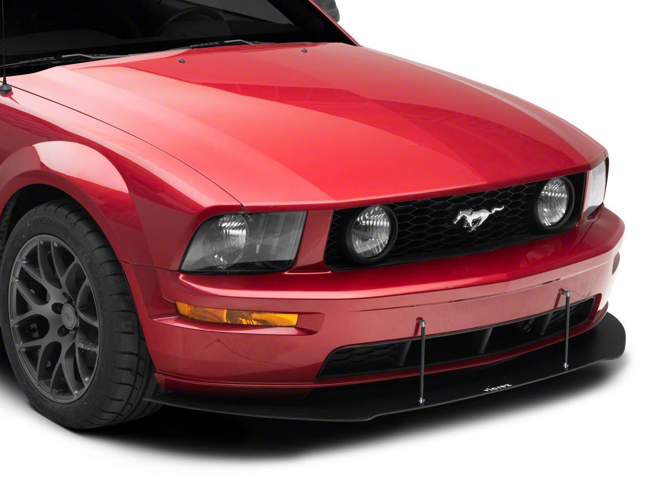 Application. This DR Style Textured Black Front Chin Splitter is specifically designed to fit 2005-2009 GT and V6 Ford Mustang models.