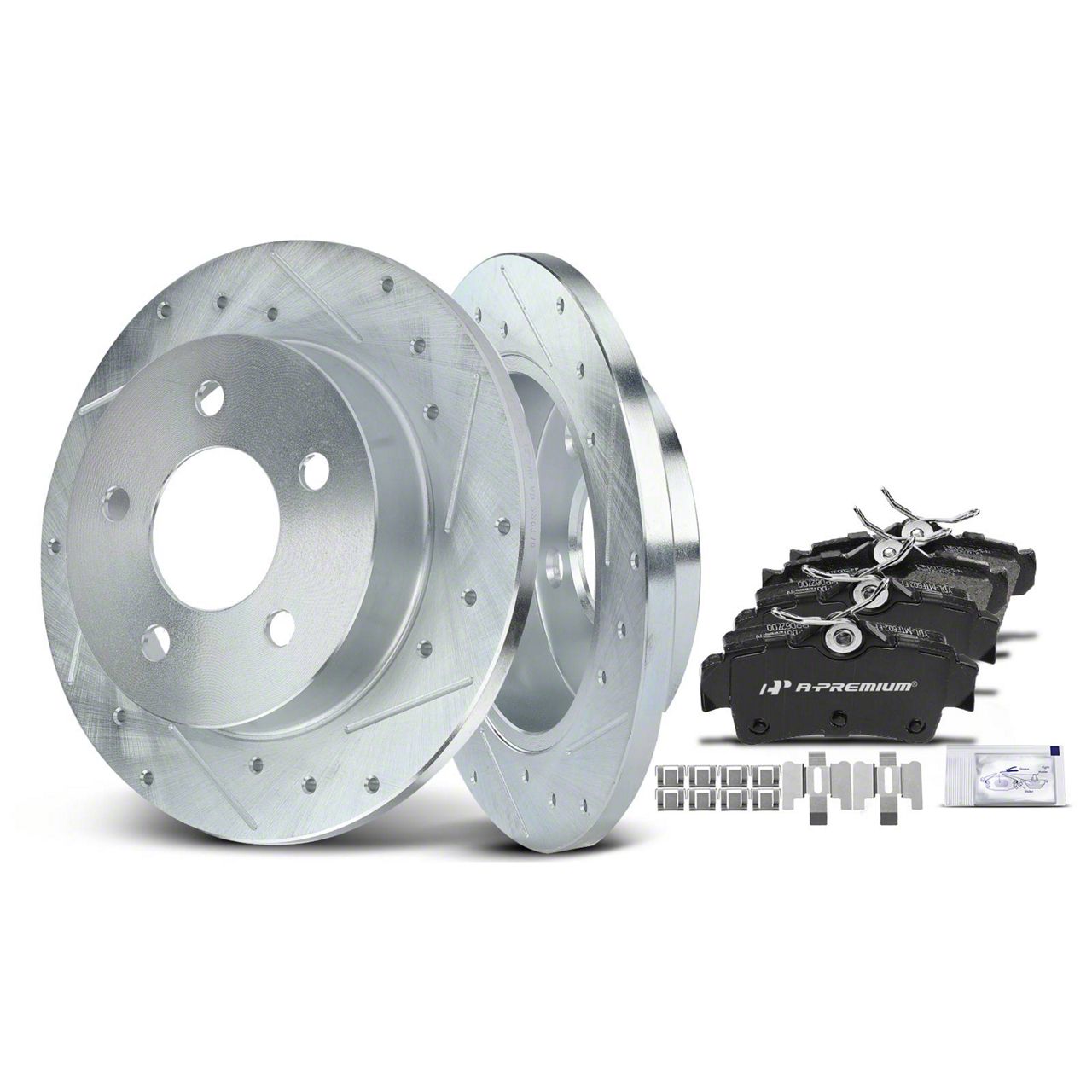 Precise Fit. The A-Premium Drilled Brake Rotors & Ceramic Brake Pads are engineered to provide a precise fit for your vehicle. With meticulous attention to detail and exacting specifications, these brake components ensure a seamless installation and optimal performance, delivering a perfect match for your braking system.