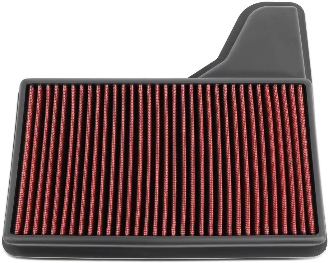 Durable Manufacturing. Crafted from a quality, red, oil-treated cotton gauze, this flat stock style air filter is manufactured to be used with standard stock air boxes. Washable and reusable, this drop-in filter is extremely cost effective over time. Guaranteed to improve your Mustang’s overall performance, this high flow filter won’t disappoint.