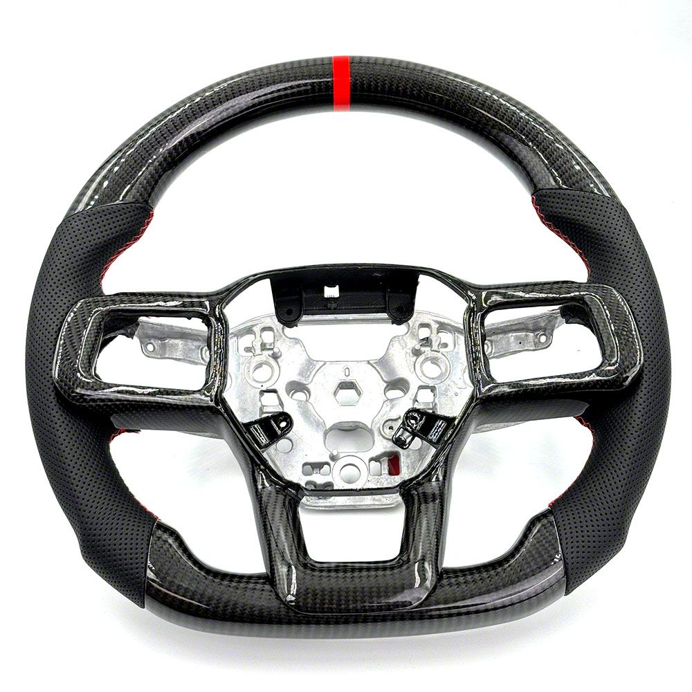 Application. This DTR Carbon Fiber Steering Wheel fits 2024-2026 Ford Mustang models.