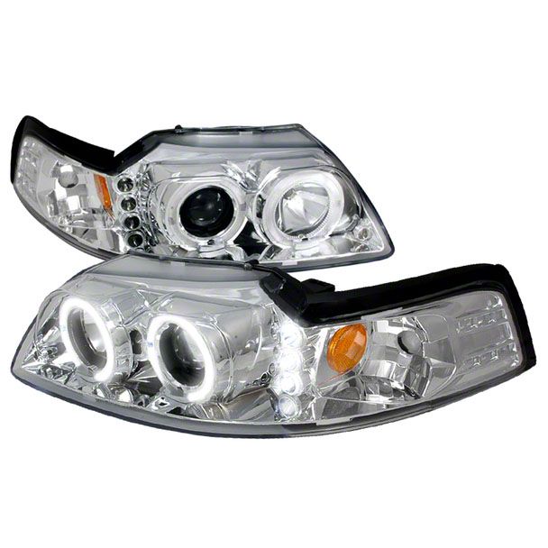 Application. The Dual Halo Projector Headlights; Chrome Housing; Clear Lens were designed to fit all 1999-2004 Ford Mustang models.