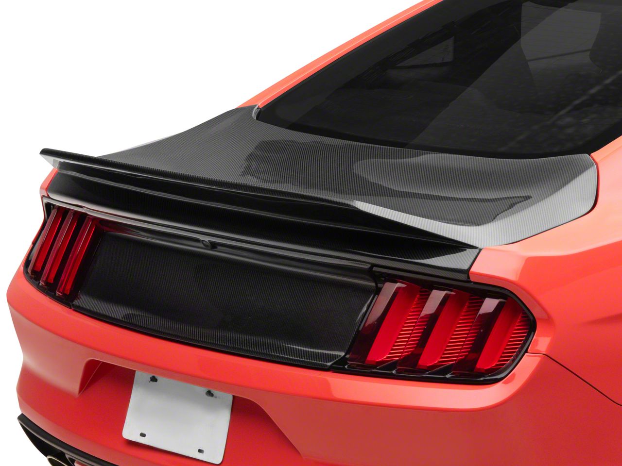 Construction and Appearance. Constructed from high-quality carbon fiber, this trunk combines lightweight strength with premium aesthetics. The molded design integrates both the decklid and ducktail spoiler for a clean, cohesive look that complements the Mustang's sporty lines. The raw carbon finish offers a track-focused appearance that can be left exposed or painted to match.
