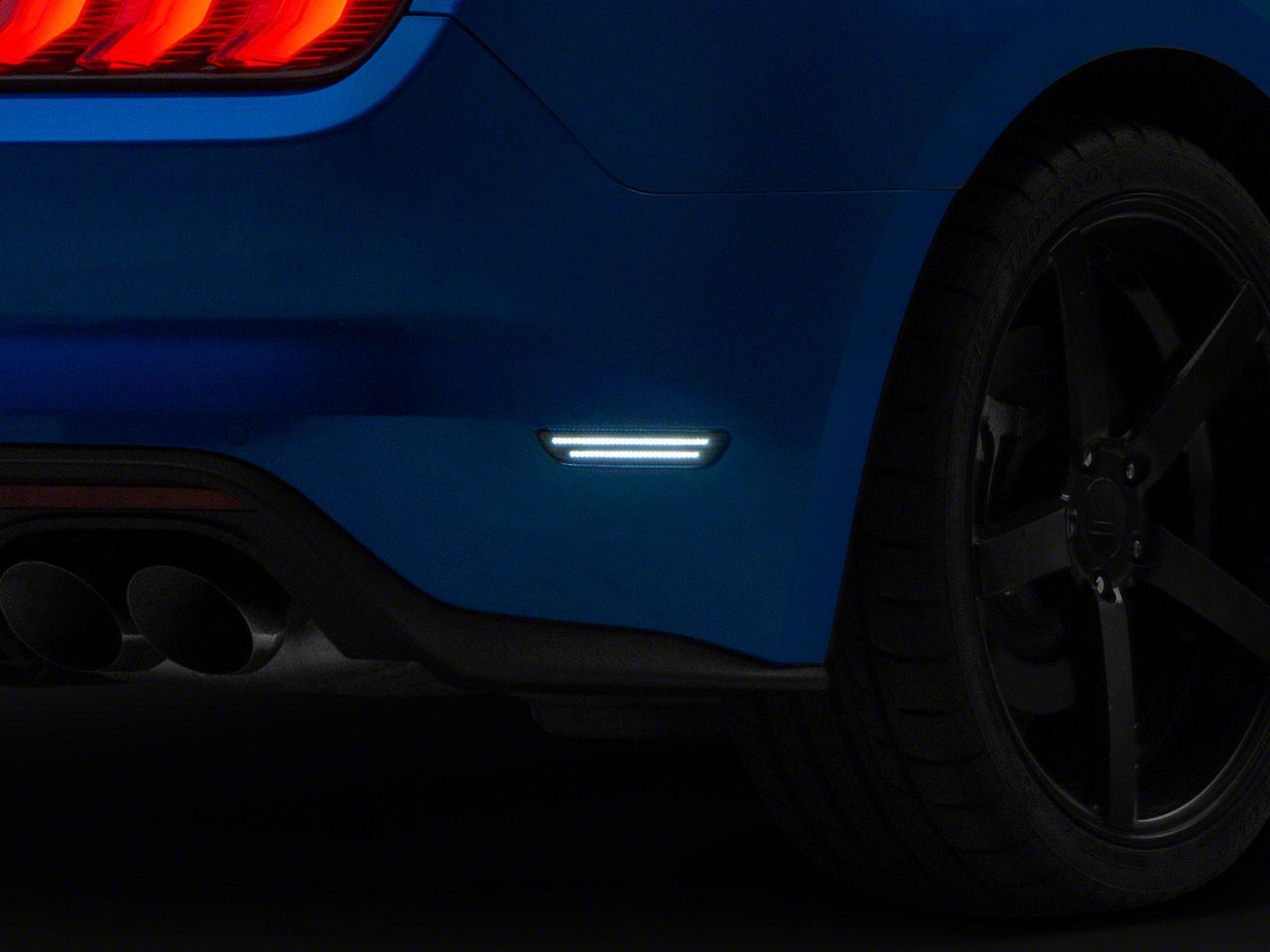 Modern LED Styling Upgrade. The Dynamic LED Rear Side Markers provide your Mustang with an aggressive custom look and improved visibility. Featuring a bright, sequential white LED pattern behind a smoked lens, these side markers offer both style and safety with effortless plug-and-play installation.