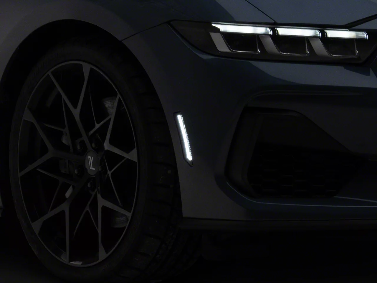 Application. These Dynamic LED Side Markers fit 2024-2026 Ford Mustang models. They are a direct replacement for your factory-installed side markers, offering improved lighting and a more modern, aggressive look. With their dynamic white light output and stylish design, these side markers are a perfect addition to enhance your vehicle’s overall appearance and visibility.