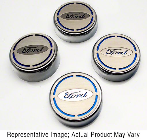 Unmatched Customization. Looking to customize your Mustang’s under the hood style? Then look no further than the Engine Cap Covers with Ford Oval Logo; Brushed Black. Measuring a beefy 0.75 inches thick, this set of 4 engine caps are made specifically to fit your Mustang’s oil, water, brake, and windshield washer wells.