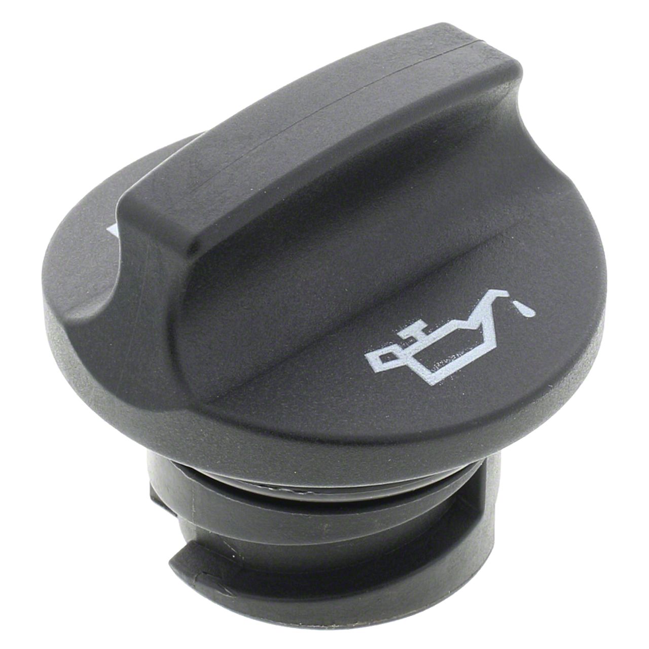 Construction and Appearance. Made from durable plastic, this oil filler cap features a twist-lock cam type mounting for a secure fit. It has white indicator markings for easy identification and a black finish, ensuring it blends seamlessly with most engine compartments.