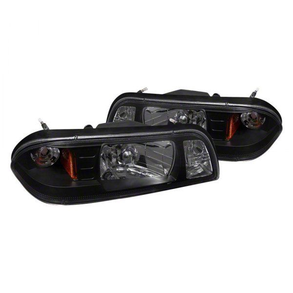 Application. The Factory Style Crystal Headlights; Matte Black Housing; Clear Lens fit 1987-1993 Mustang models.