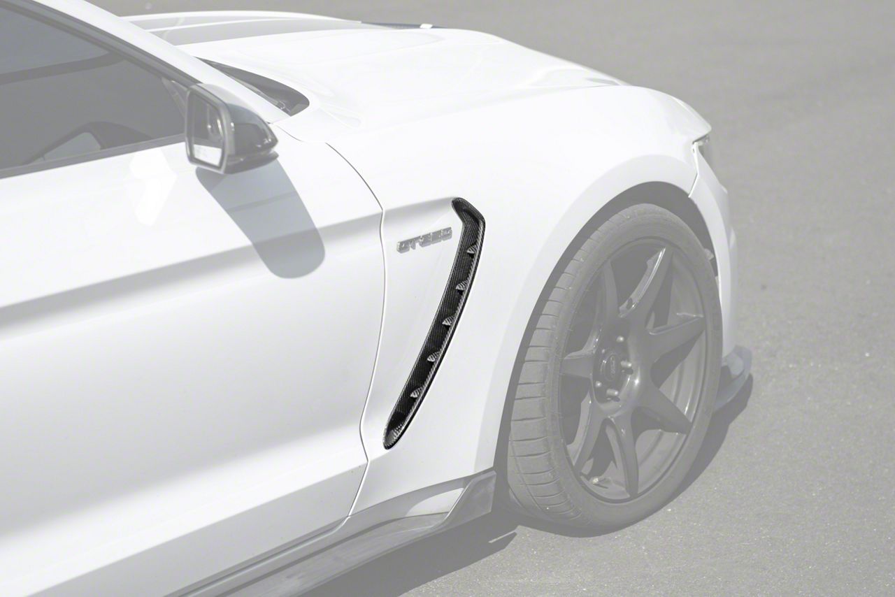 Application. These Fender Vent Covers fit 2015-2020 Ford Mustang GT350 models. By adding a carbon fiber accent with a race-inspired design, they enhance exterior styling while maintaining factory integration. This upgrade brings both performance-focused aesthetics and dependable quality to your vehicle.