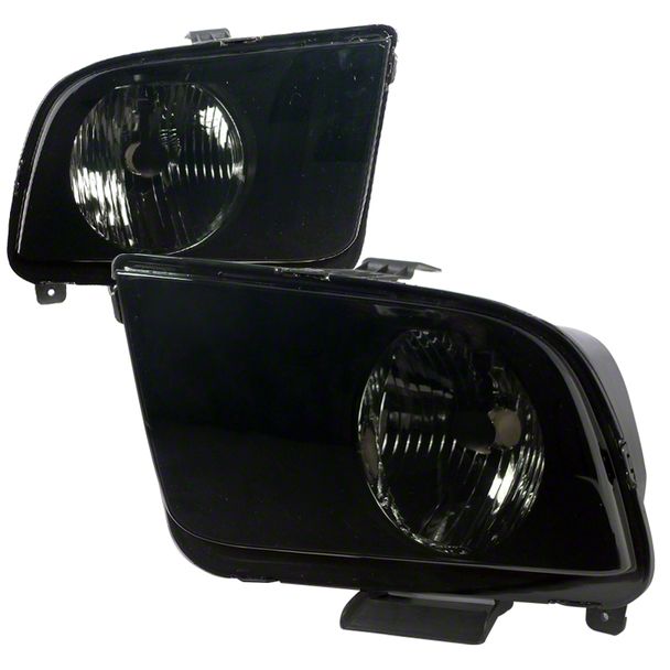 Factory Style Headlights; Matte Black Housing; Smoked Lens (05-09 Mustang GT, V6)Find parts that fit my vehicle