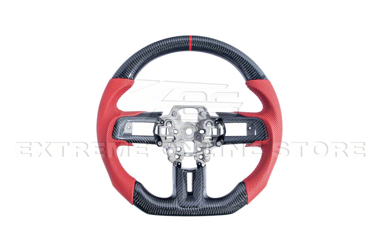 Factory Style Perforated Leather Steering Wheel with Button Covers; Carbon Fiber with Red Strip (18-23 Mustang w/o Heated Steering Wheel)Find parts that fit my vehicle