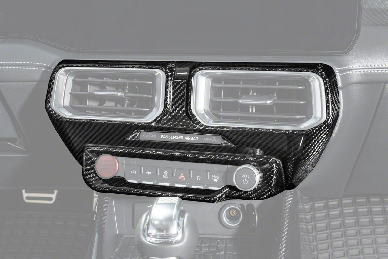 Carbon Fiber Interior Accent. The Trim Cover adds a sleek, performance-inspired element to your dashboard with a design that blends seamlessly into factory styling. Made for those who value both visual refinement and material quality, it delivers a premium aesthetic upgrade. This Trim Cover fits 2024-2026 Ford Mustang models with single screen, ensuring a precise fit tailored specifically to this interior configuration.
