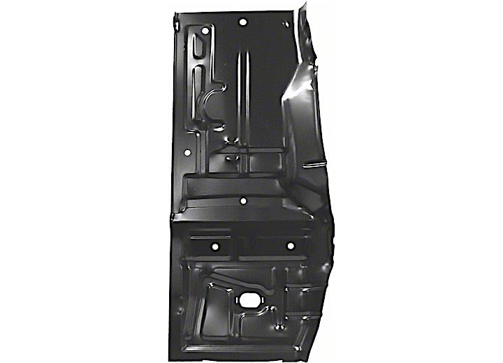 Construction and Appearance. This Floor Pan Half Patch Panel is designed solely for the front driver side. This is a direct replacement part and thanks to its steel build and durable finish, you get remarkable strength and endurance.