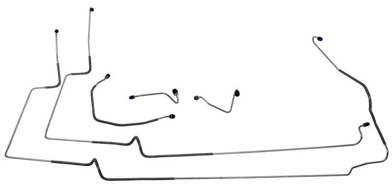 Construction and Appearance. Manufactured to match original factory specifications, this brake line set offers durability and resistance to corrosion, maintaining performance over time. The components have a clean, professional finish suitable for restoration or repair projects.