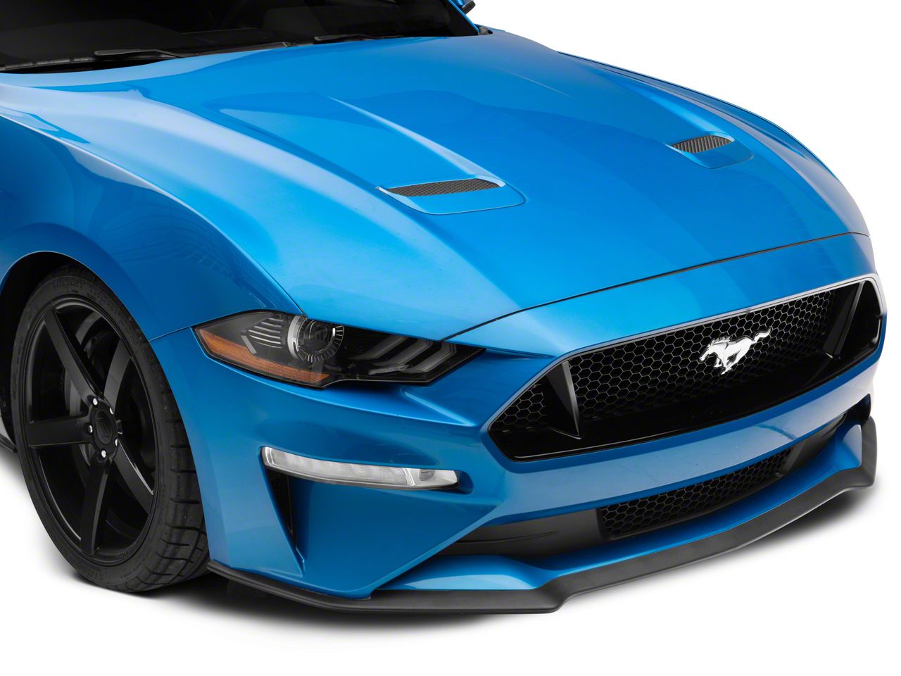Application. The Mustang Front Bumper Chin Spoiler bolts onto the front of Ford Mustang GT and EcoBoost vehicles made between 2018-2023.