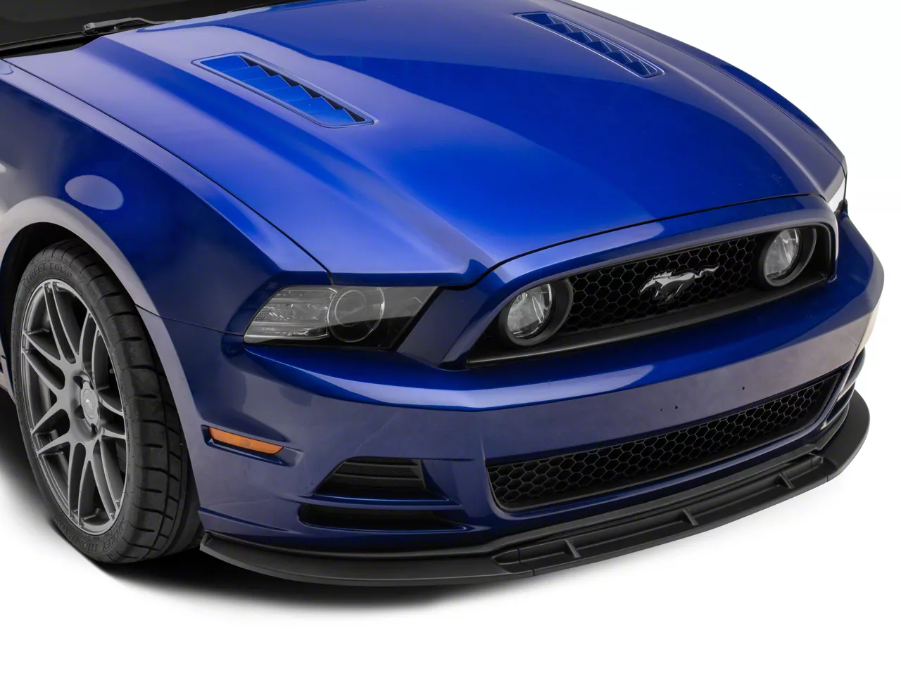 Application. The Front Chin Spoiler Splitter; Matte Black is designed to fit Ford Mustang GT V6 models built between 2013-2014.