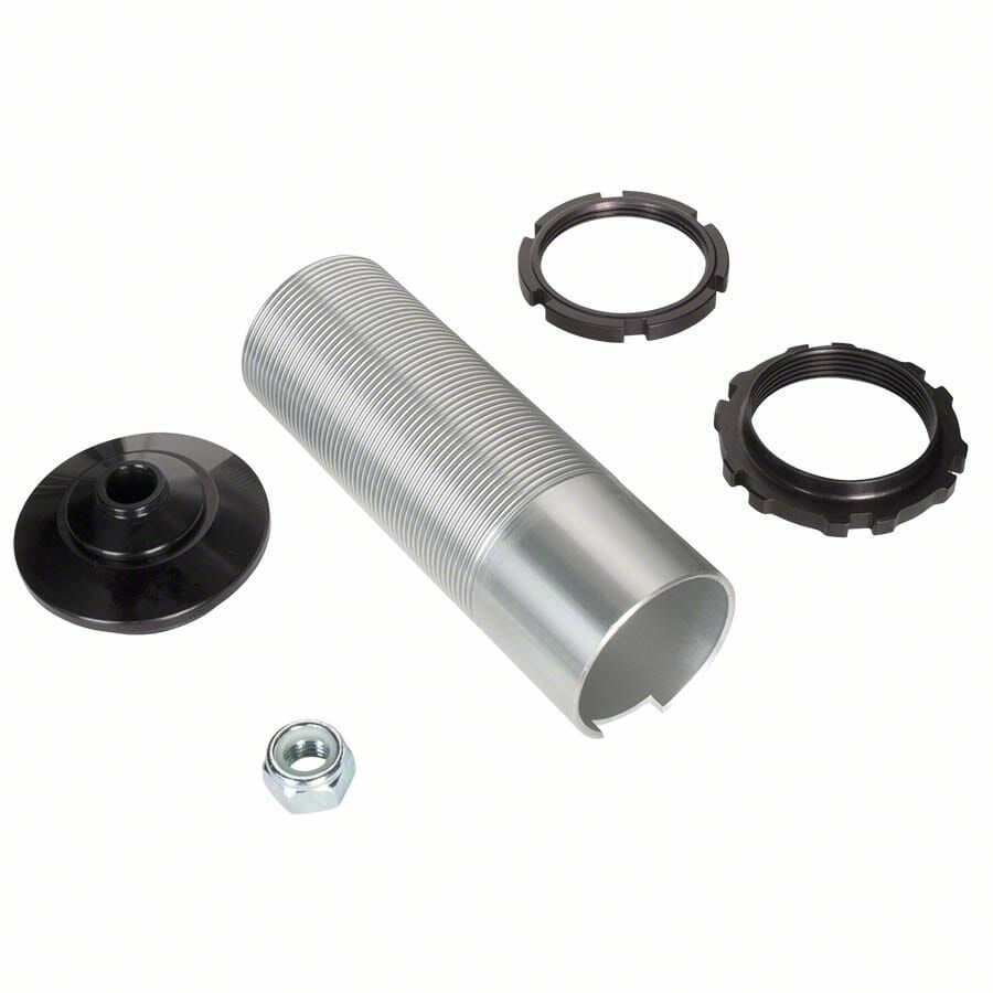 Construction and Appearance. Built with performance and durability in mind, the Coil-Over Strut Kit includes a polished chrome and glossy black finish that offers both strength and visual appeal. The threaded aluminum coil-over sleeve, top spring seat, encapsulated thrust bearing and races, and accompanying jam and lock nuts are engineered for strength and long-term reliability under demanding conditions.