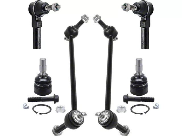 Construction and Appearance. Finished in a protective glossy black coating, each component is crafted to OE standards and tested for impact, wear, and fatigue. The lower ball joints, outer tie rods, and sway bar links are engineered for long-lasting performance under both daily driving and spirited conditions. This kit delivers durable, OE-comparable performance with visual appeal and corrosion resistance.
