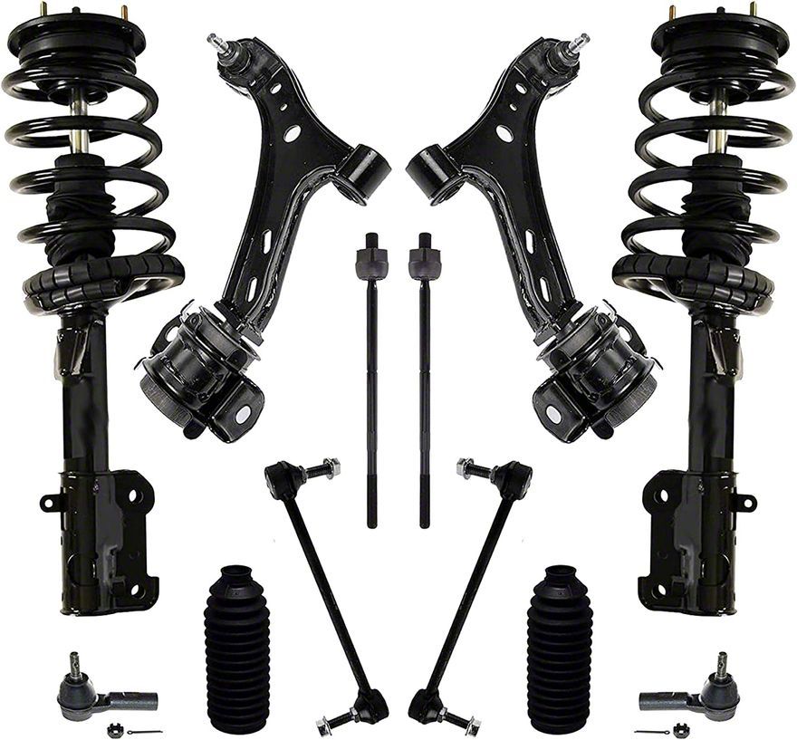 Complete Suspension Replacement Kit. This 12-piece suspension kit includes front lower control arms, strut and spring assemblies, sway bar links, and tie rods, providing a comprehensive replacement for worn-out components. Designed to restore handling and ride quality, this kit meets or exceeds OEM specifications, ensuring a smooth and reliable driving experience.