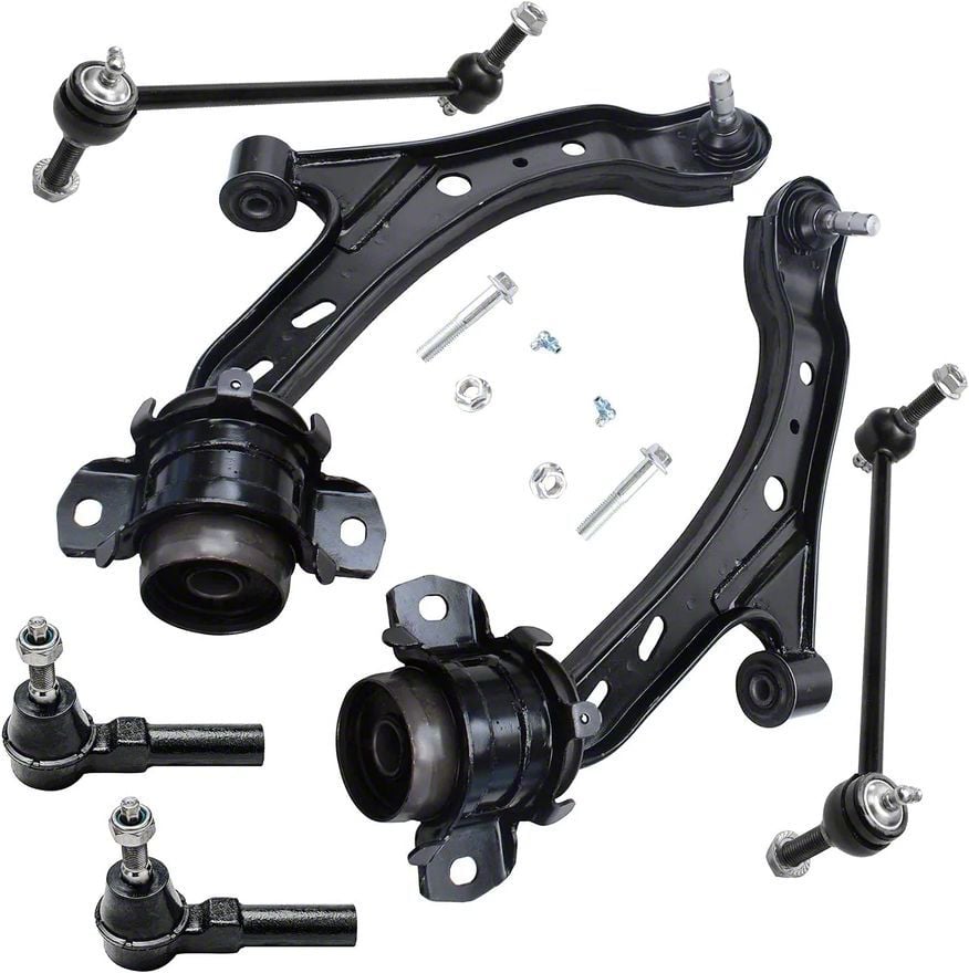 Application. The Front Lower Control Arms with Sway Bar Links and Tie Rods are designed to fit 2005-2009 Ford Mustang GT and V6 models.