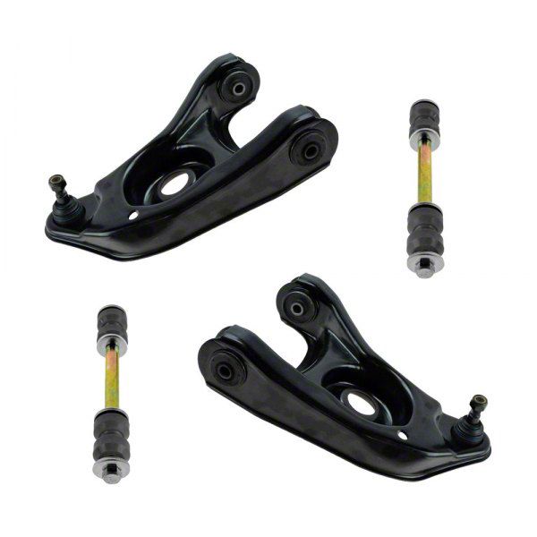 Application. TRQs Front Lower Control Arms with Ball Joints and Sway Bar Links kit is compatible with Ford Mustang models manufactured during 1994-2004.