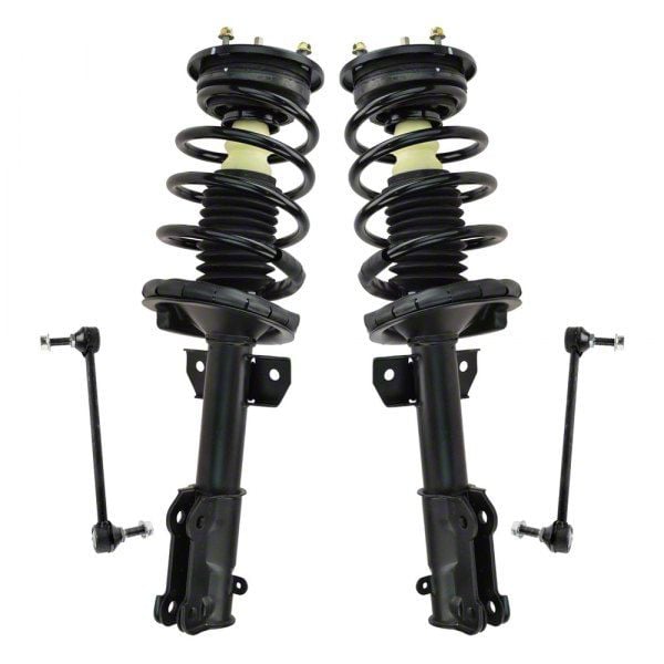 Worn Front Struts? Your struts will support your vehicle's weight by absorbing impacts for a smooth ride. If your driving experience has not been as smooth as expected, or you're having handling problems, it might be time to upgrade the strut assembly. TRQ is an established brand you can trust for first-class auto replacement parts. They're offering a Front Strut and Spring Assemblies with Sway Bar Links compatible with Ford Mustangs.