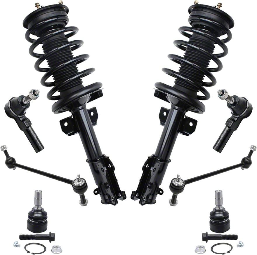 Complete Suspension Solution. The Front Strut and Spring Assemblies with Ball Joints, Sway Bar Links, and Outer Tie Rods provide a comprehensive suspension upgrade for your vehicle. This kit improves ride quality, steering responsiveness, and overall handling. It's designed to be a direct replacement, making it essential for maintaining vehicle stability and safety.