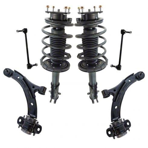 Built to Perform. Crafted from premium materials, the front struts support your vehicle’s weight while absorbing surface impacts. To promote efficient steering and guide your wheels up and down, two lower control arms are included. Also, the spring assemblies allow proper weight adjustment to road irregularities. Resistant to rust and corrosion, these components come with a durable finish.