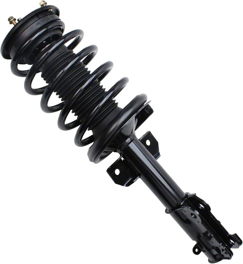 Construction and Appearance. Finished in matte black, this strut and spring assembly is manufactured to OE compatible and comparable standards for strength, durability, and consistent performance. Each unit is impact, wear, and fatigue tested to ensure it can withstand repeated suspension loads and varying road conditions. Built in an ISO9002 certified facility, the assembly reflects controlled manufacturing processes and strict quality standards. The integrated spring and strut design ensures proper damping characteristics, controlled body motion, and predictable handling behavior throughout daily driving.