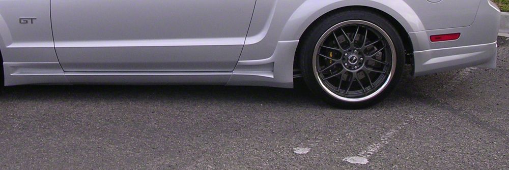 Application. The Gen 3 Unpainted Side Skirts are intended for use on all 2005-2009 Ford Mustang models.