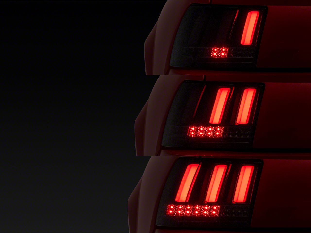 Application. These Gloss Black Sequential Fiber Optic Tail Lights fit all 1999-2004 Ford Mustangs, excluding 1999-2001 Ford Mustang Cobra models.