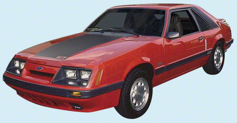 Application. This GT Hood Blackout and Decklid Name Decal Kit fits 1985-1986 Ford Mustang GT models.