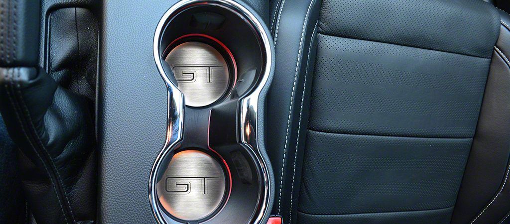 Application. The GT Style Cup Holder Accent Plates; 2-Piece are designed to fit all 2015-2023 Ford Mustang GT models.