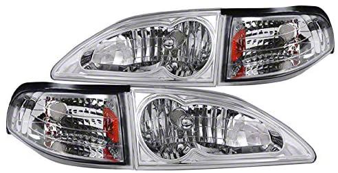 Smoothed Out Appearance. Whether you are looking to replace old, worn stock headlights or upgrade to a pair of brand new headlights, this set of Ford Mustang Headlights with Corner Lights provides a perfect solution. Chrome housing with amber corner lights gives your Mustang a new and modern appearance that can smooth out the rough edges of any old or beaten-up SN95 Mustang body.