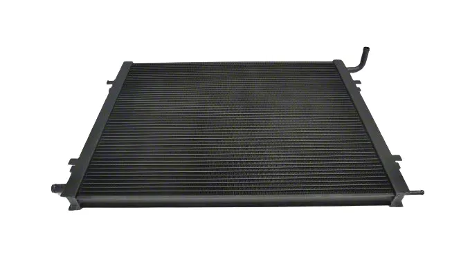 Construction and Features. Crafted from high-quality aluminum and finished in matte black, this heat exchanger features a fully TIG welded, non-epoxy furnaced brazed core for enhanced durability and heat dissipation. The bolt-on design retains the stock lines and mounting tabs, ensuring a secure fit and easy installation.