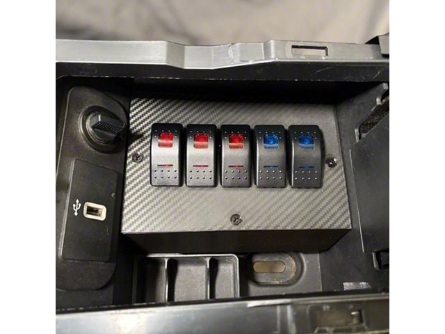 Stealthy Control for Custom Accessories. This Hidden Rocker Switch Panel; 5-Switch offers a clean, low-profile solution for managing up to five aftermarket accessories in your 2015–2023 Mustang. Whether you're powering auxiliary lighting, air suspension, or performance mods, the panel keeps your controls discreet and easily accessible.
