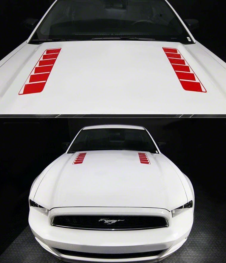 Stylish Custom Hood Detail. The Hood Vent Louvers Imitation Decals offer an easy and affordable way to give your Mustang a race-inspired look. Designed for visual enhancement, these decals simulate the appearance of hood louvers and provide a sharp, aggressive aesthetic without permanent modifications.