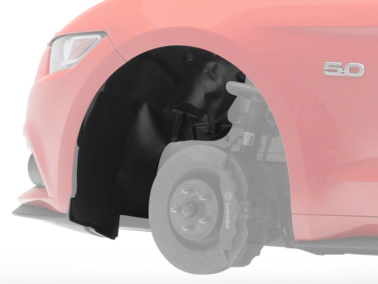 Direct OEM Replacement. This Inner Fender Liner is a direct factory replacement for your Mustang GT, EcoBoost, or V6’s damaged or punctured inner fender liner. This inner fender offers direct factory fitment that installs without cutting or additional fabrication. In addition, its matte black appearance will match your passenger side fender liner and ensure your driver-side wheel well is adequately protected.