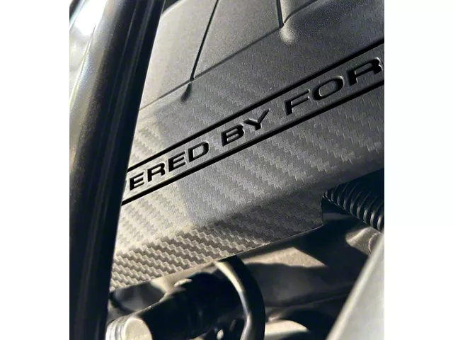 Premium Vinyl Inserts. The Intake Cover Letter Vinyl Inserts in Gloss Black provide a bold and classic way to enhance your engine bay. Designed with "POWERED BY FORD" in factory font, these inserts deliver a high-end appearance while showcasing pride in your vehicle's heritage.