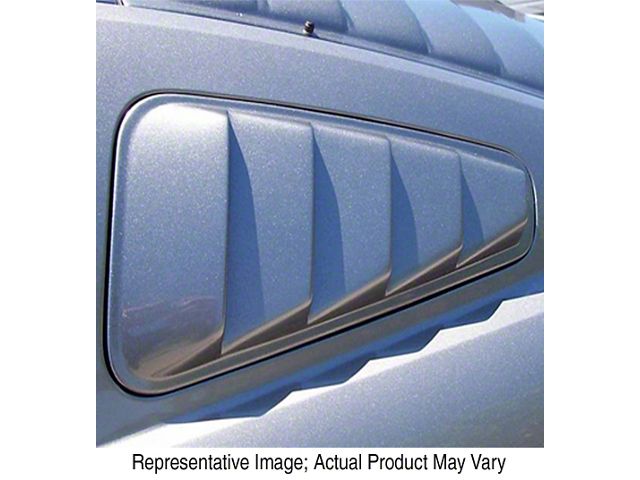 Mustang Styling Upgrade. Upgrade the look of your windows with the Large ABS Quarter Window Louvers - Pre-Painted. These quarter window louvers are custom-fitted to your C-pillars, constructed using sturdy thermoformed ABS plastic for performance you can trust.