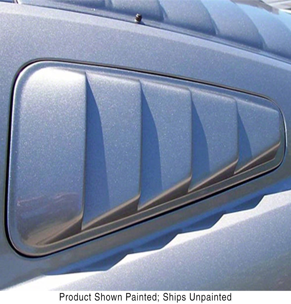 For That Ultimate Classic Look. Add a touch of elegance to your Ford Mustang Coupe’s setup by installing these Large Unpainted ABS Quarter Window Louvers. The louvers’ C-pillar styling and eye-catching vents give your vehicle a sleek look that emanates the Mustang’s classic appearance. What’s more, its impressive design helps reduce interior temperatures while increasing the car’s overall privacy.