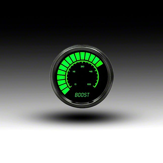 LED Analog Bargraph Boost Gauge with Black Bezel; 2-1/16-Inch; Green; 0-60 PSI (Universal; Some Adaptation May Be Required)