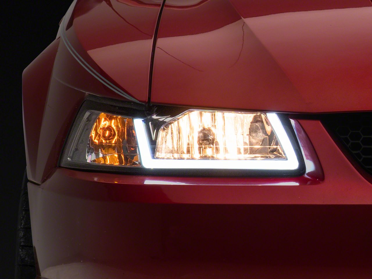Application. The LED Bar Factory Style Headlights; Chrome Housing; Clear Lens fits 1999-2004 Mustang models.