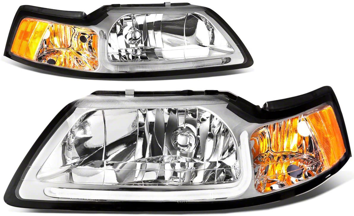 Application. LED DRL Headlights; Chrome Housing; Clear Lens is compatible with the 1999-2004 Ford Mustang.