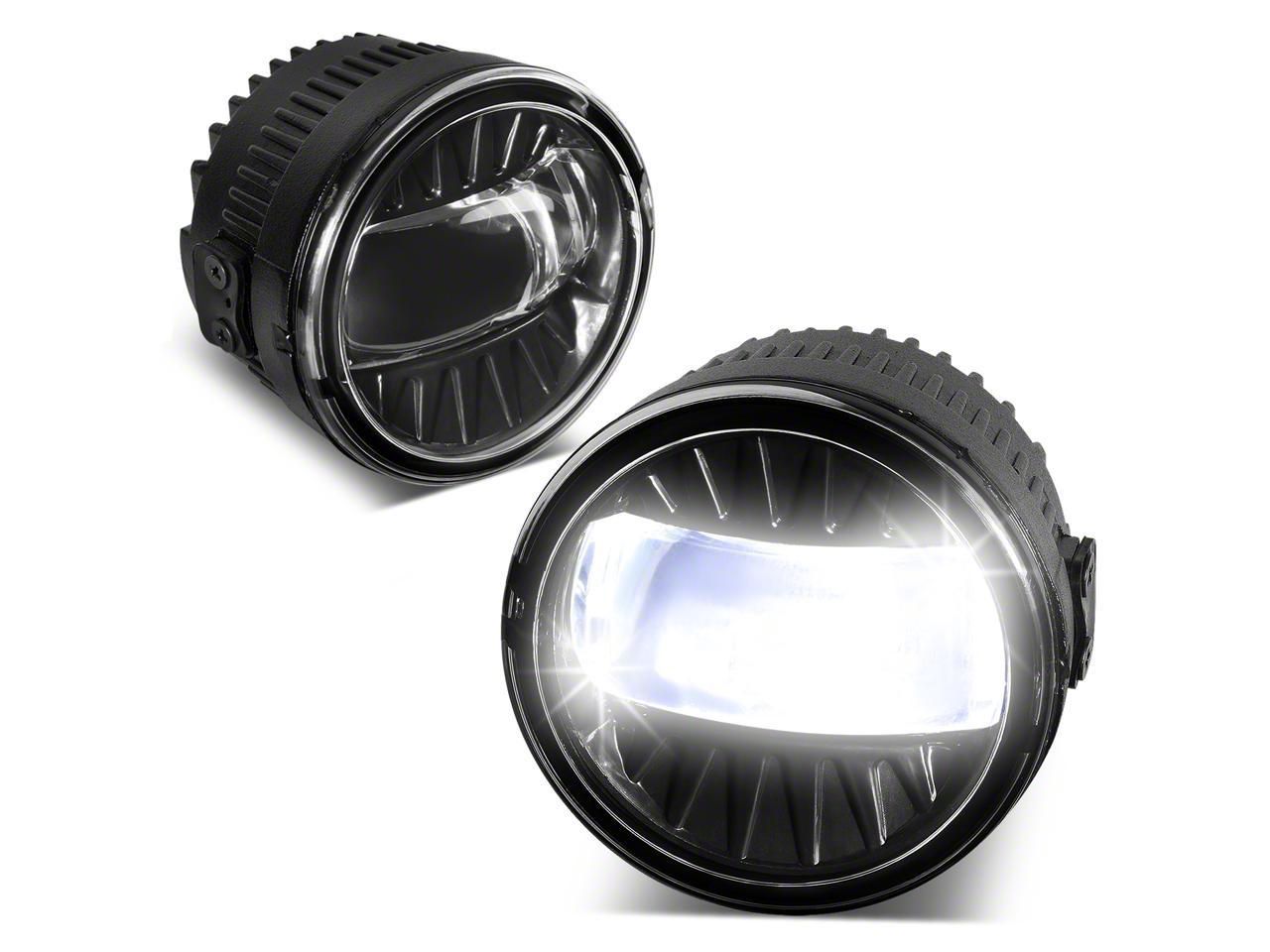 Construction and Appearance. These LED Projector Fog Lights have clear lenses and built-in projector beams. The housings are resilient.