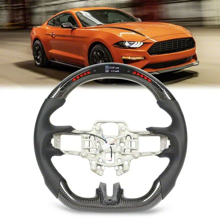 High-Performance Steering Upgrade. Elevate the driving experience of your 2015-2017 Ford Mustang with this Racing Steering Wheel. Featuring a race-inspired design and a built-in LED racing display, this steering wheel combines functionality with sleek aesthetics to enhance your vehicle’s interior and driving dynamics.