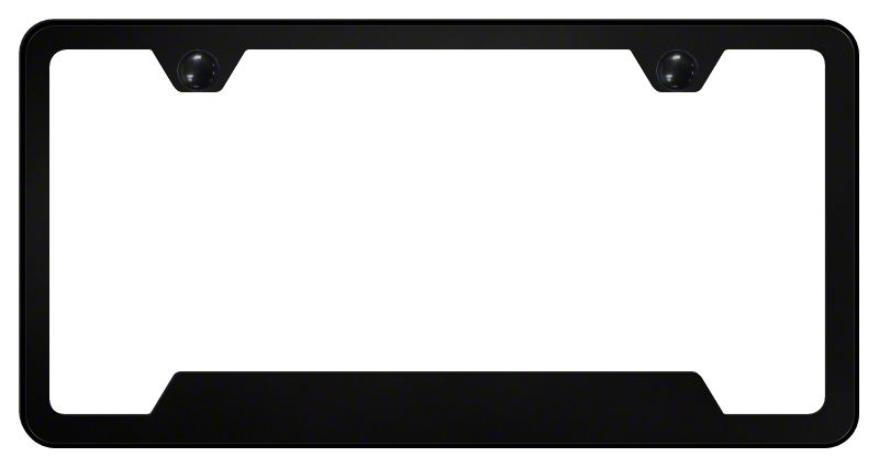 Tough Stainless Steel Cut Out. The 2-Hole Cutout License Plate Frame utilizes new laser-cutting technology that provides accurate shaping that ensures absolute fitment. This license plate frame is molded from a finely-forged stainless steel alloy that has also been e-dipped in a black powder coat to protect it from rust and chemical damage.