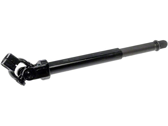 Made of Sturdy Steel. To handle your car’s high-performance steering operations, this lower steering shaft is manufactured using sturdy steel. The strength of this material makes the shaft almost unbendable and unbreakable. Furthermore, its construction is fortified with a black coating that helps protect it from corrosive elements.
