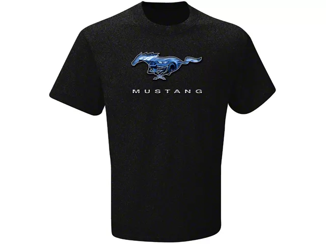Available in Men's Sizes. This black short sleeve Mustang themed graphic T-Shirt is available in a variety of men's sizes. Please select from the options available.