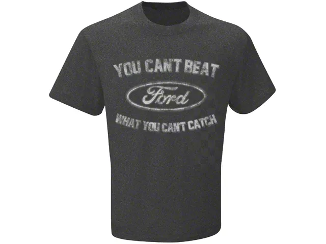 Ford Themed Graphic T-Shirt. This great looking gray short sleeve t-shirt is a must have for all Ford enthusiasts. Officially licensed, this graphic tee features the Ford Oval logo with the text "You Can't Beat What You Can't Catch". This T-Shirt makes the perfect gift for yourself or the fellow Ford lover in your life.