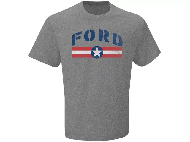 Ford Themed Graphic T-Shirt. This great looking gray short sleeve t-shirt is a must have for all Ford enthusiasts. Officially licensed, this graphic tee features an old style Air Force logo. This T-Shirt makes the perfect gift for yourself or the fellow Ford lover in your life.